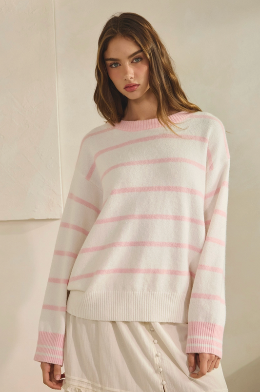 Lightweight Striped Sweater in Pink - By: Wishlist