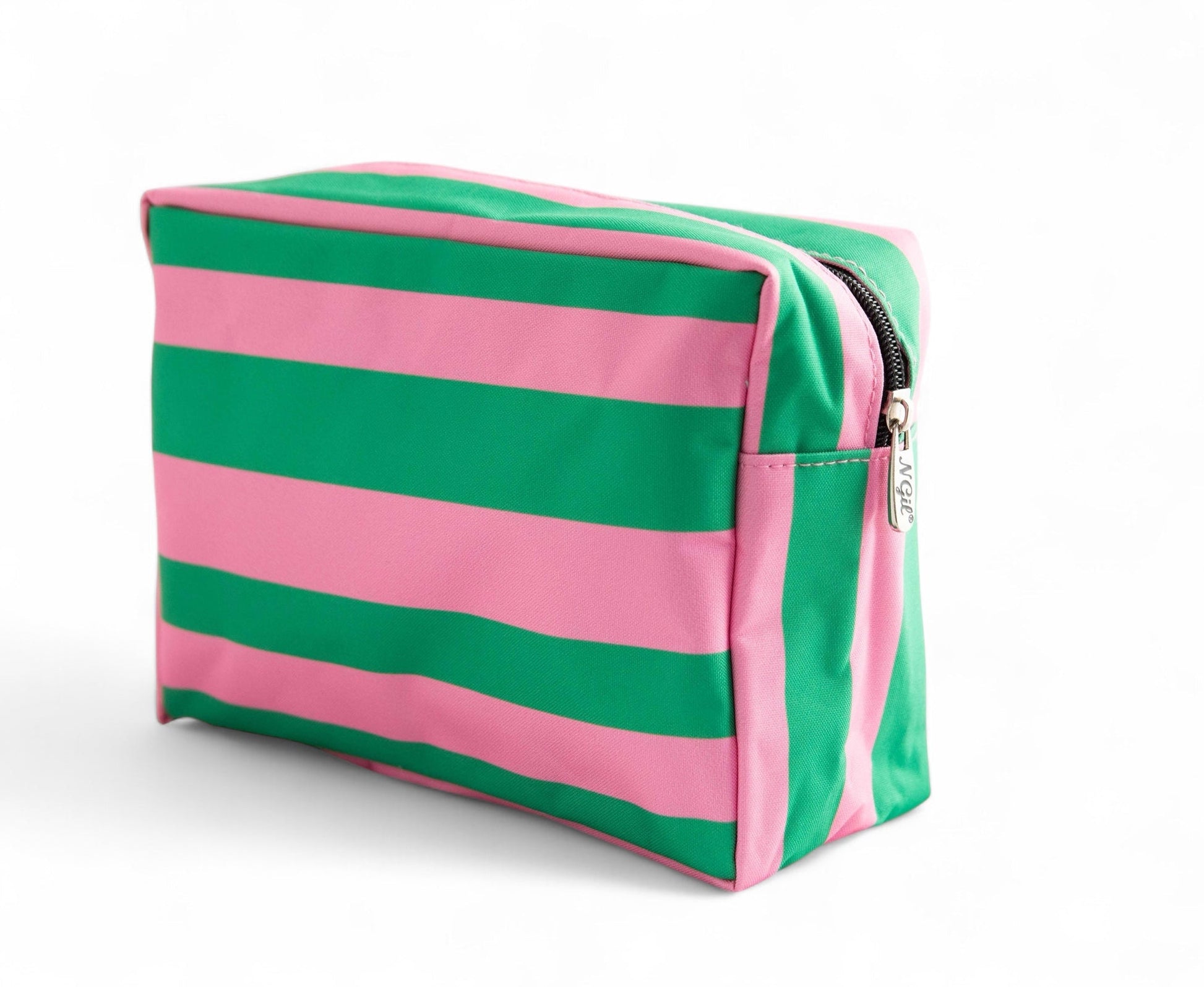 Stripe Canvas Cosmetic Tote - Pink & Green
