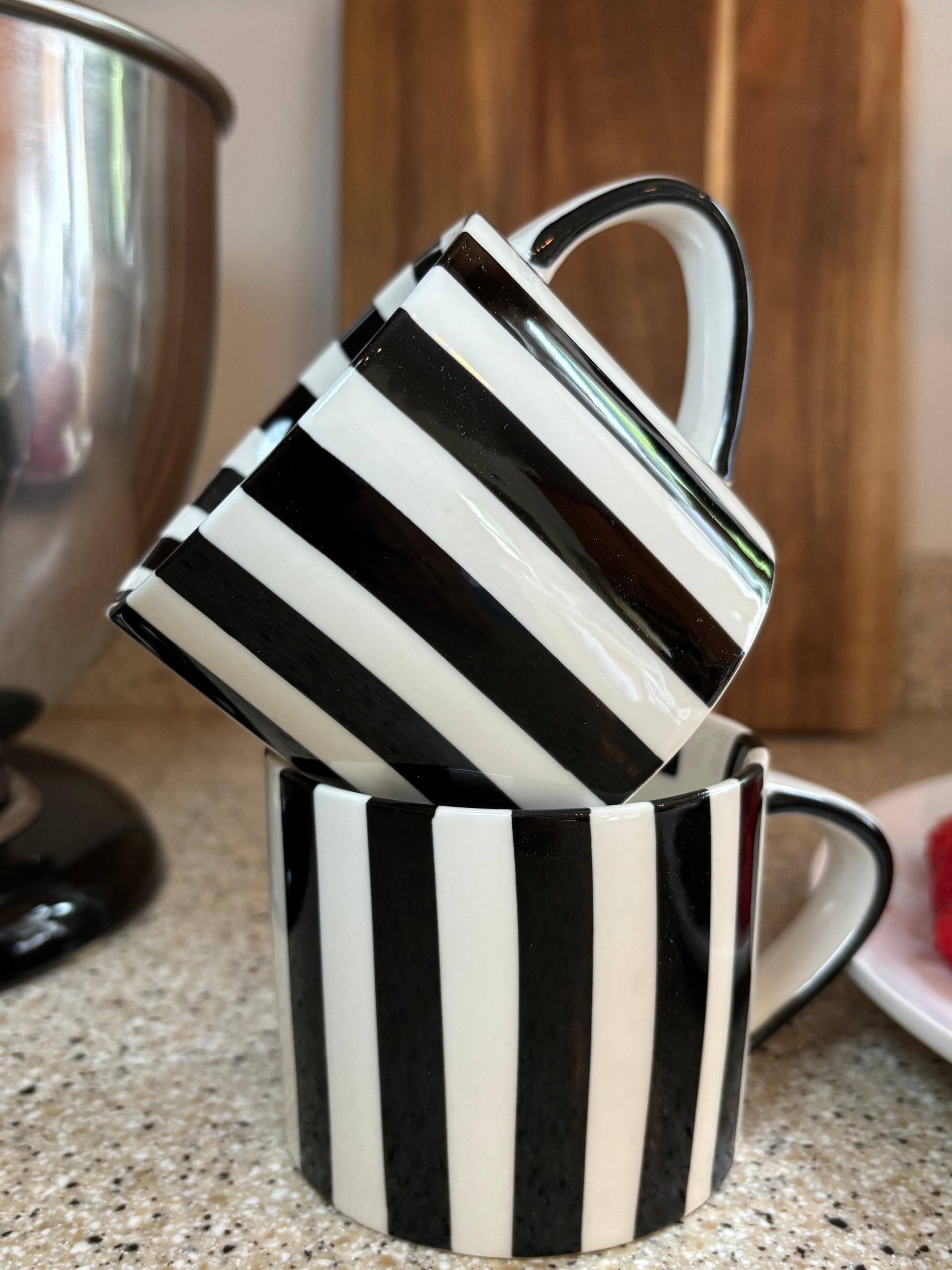 Bring a playful yet stylish touch to your morning routine. These mugs feature bold, colorful stripes that add a pop of personality to any kitchen. *